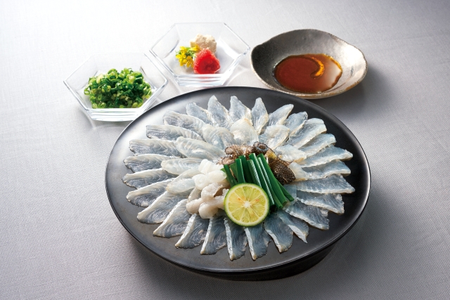 城下カレイは大分県日出城跡下の海底から湧き出る清水で育つマコガレイで、 「天下の美味」として知られる高級魚です。 さっぱり上品な味の中に独特の甘味があるお刺身です。